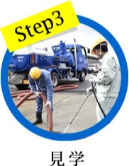 求人にご応募いただいた方には、勤務条件や環境メンテナンスという仕事の内容について丁寧に説明させていただきます。普段、皆さんがほとんど目にすることのない場所が私たちの仕事現場となります。説明の後は引き続き簡単な面接を受けていただきます。面接の場所となる本社敷地内には強力吸引車や高圧洗浄車、路面清掃車などの特殊車両が揃っていますので、現場の雰囲気を感じていただくこともできると思います。