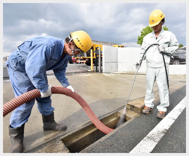 | 業務内容 | 上下水道の清掃、メンテナンス(道路・側溝清掃・浄水場のろ過砂の交換工事等)や、各種工場の施設メンテナンス(洗浄車を使った配管洗浄や排水処理場の廃液収集等) |